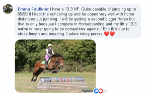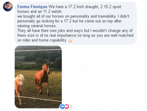 The two Emma’s above commented on our Facebook page. Size was only important to Emma Faulkner based on the Horse Boarding events, where a larger stride is a must to compete. Emma Finnigan commenting about the horse and rider being “well matched”. Our thought process wasn’t too far off after all.